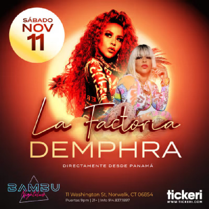 No te pierdas el espectáculo de La Factoría en vivo en el Blue Moon de Long Island, Nueva York, el 10 de noviembre. Disfruta de lo mejor de la música de Demphra en una noche llena de ritmo y diversión. Obtén tus boletos en Tickeri y asegura tu lugar en este concierto imperdible.