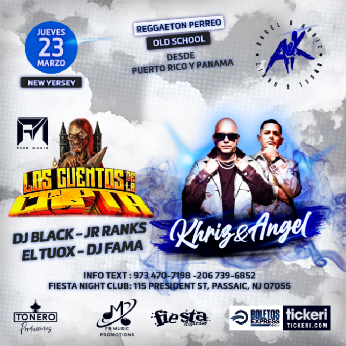 KHRIZ & ANGEL - LOS CUENTOS DE LA CRIPTA DJ BLACK-JR RANKS -ELTUOX-DJ FAMA EN CONCIERTO ! PASSAIC NEW JERSEY-POSTPONED Concierto