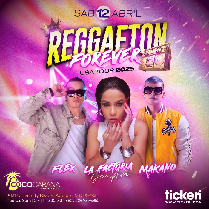 ¡Prepárate para una noche explosiva con Flex, La Factoría, Makano EN VIVO y DJ Tonero en Vivo en Adelphi Maryland!