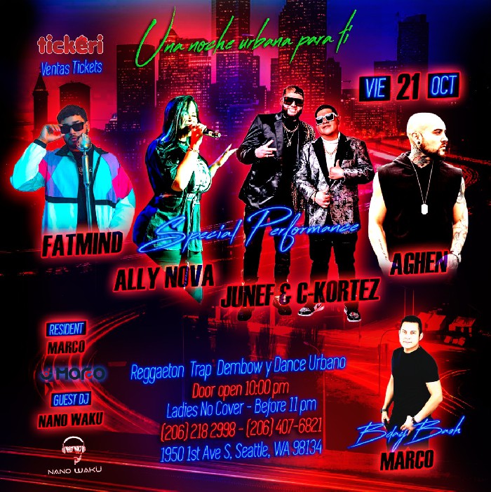 Door open 10:00 pm inf 206 510 7450Reggaeton & más